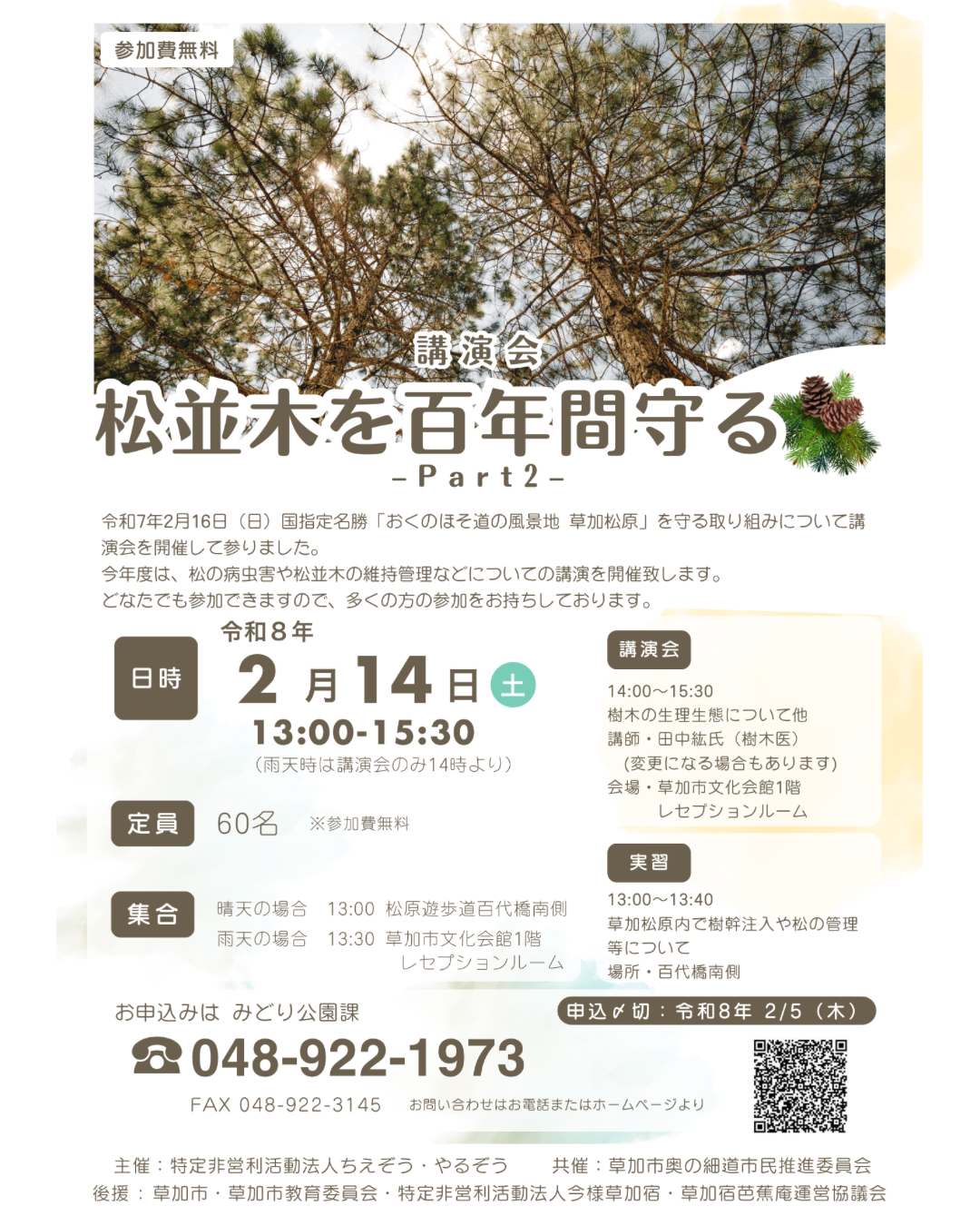 今年度は、松の病虫や松並木の維持管理などについての講演を開催致します。